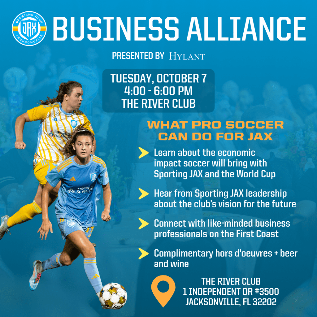 The Sporting JAX Business Alliance is back in action with its next meeting on Tuesday, October 7. Join fellow members and local leaders for an evening of networking, collaboration, and conversation about the opportunities that soccer presents on the First Coast across Jacksonville’s business community. Don’t miss this chance to make valuable connections while supporting Sporting JAX!