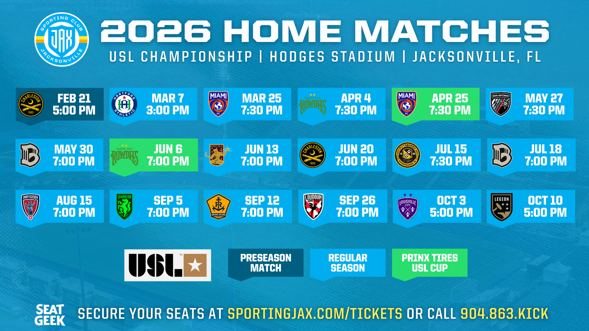 Single-match tickets are available for Sporting JAX’s inaugural season in the 2026 USL Championship!