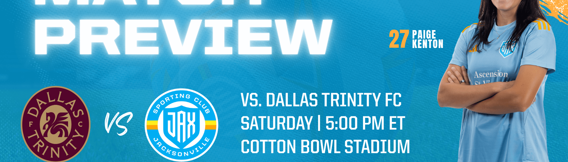 Sporting JAX (3-3-3) returns to Gainbridge Super League play on Saturday, facing Dallas Trinity FC (3-4-1) in a road match.