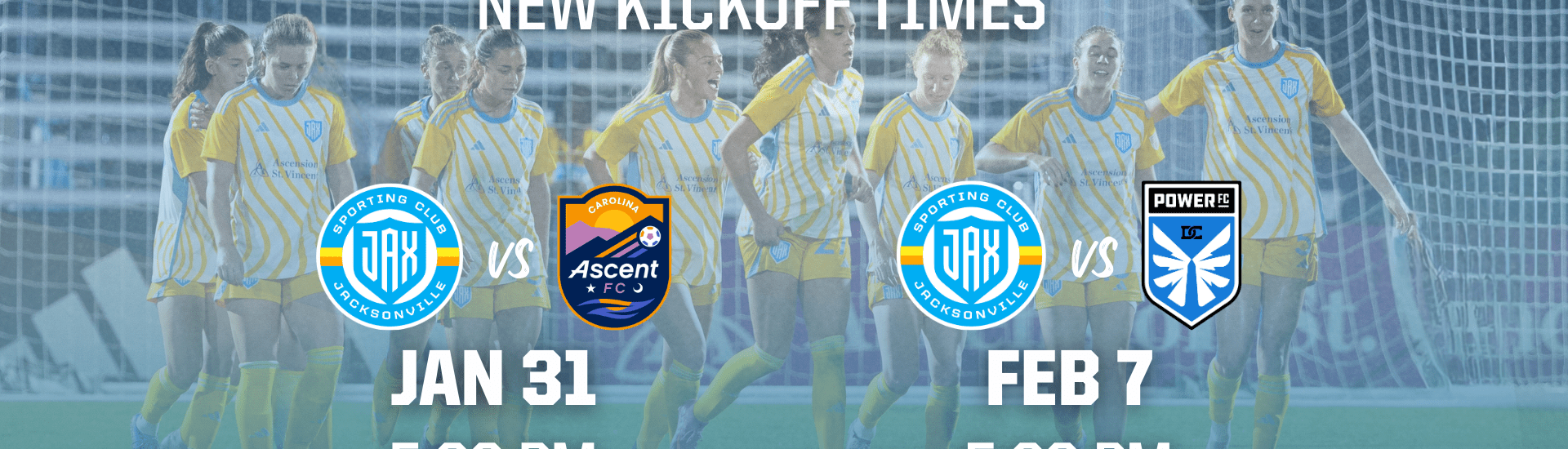 Sporting Club Jacksonville announced today the adjustment of the kickoff time for their Gainbridge Super League games taking place on Saturday, January 31, 2026 and Saturday, February 7, 2026.