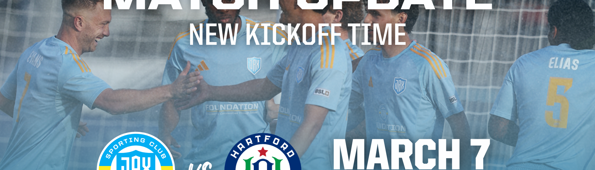 The match against Hartford Athletic, which was originally slotted for a 3 p.m. kickoff time, now has a scheduled kickoff of 7:30 p.m. This time change allows Sporting JAX to start its inaugural season in the USL Championship under the lights at Hodges Stadium, giving the historic occasion a true primetime feel.