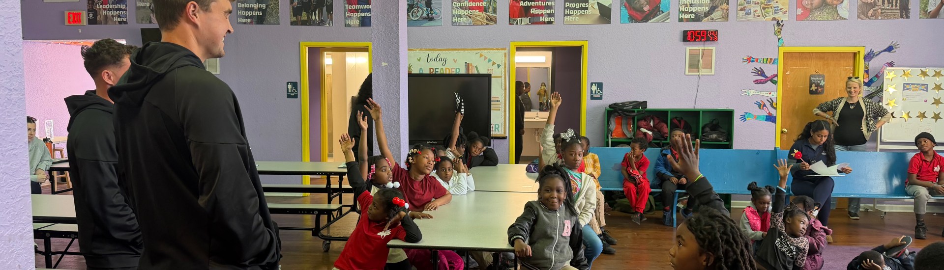 SPORTING JAX pro soccer stars Ethan Dudley and Luc Granitur took time out of their preparation for their historic home opener in the USL Championship at Hodges Stadium on Saturday March 7, kickoff 7:30PM, against Hartford Athletic to meet school pupils at Sanctuary on 8th Street After Schools Program.
