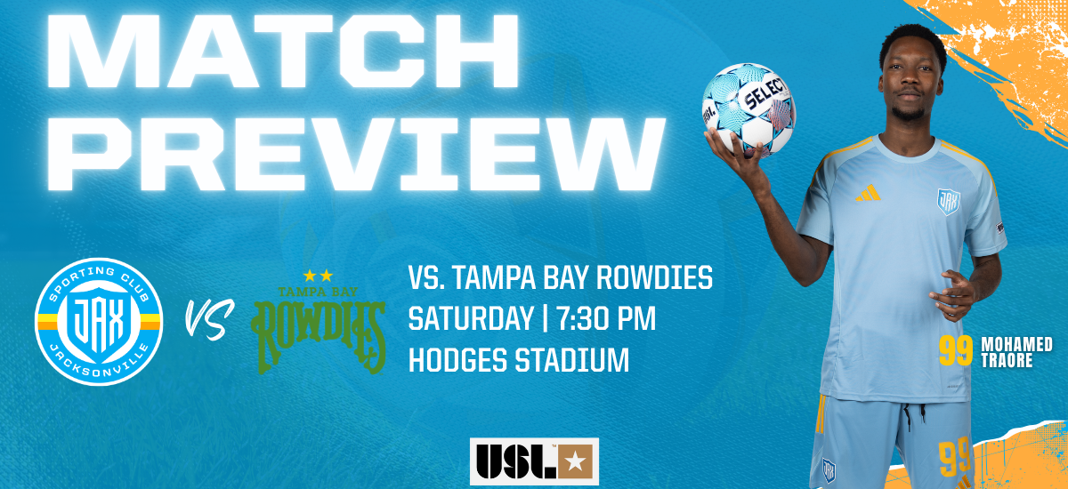 The Sporting Club Jacksonville men’s team (0-3-1, 1 pt) are back at Hodges Stadium on Saturday, taking on a hot Tampa Bay Rowdies (3-0-0, 9 pts) squad in an important USL Championship fixture.